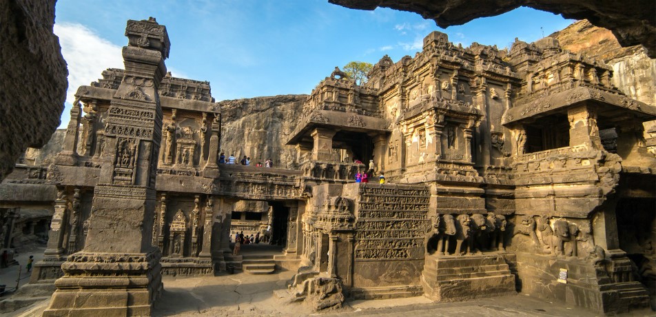ถ้ำเอลโลร่า Ellora Caves สร้างในปีค.ศ.600-1000 หรือ พ.ศ.1100 –ประมาณ พ.ศ.1400 หมู่ถ้ำนี้เป็นวัดและศาสนาสถานเจาะเข้าไปในภูเขา เช่นเดียวกับถ้ำอชันต้า แต่สร้างขึ้นในสมัยหลัง หมู่ถ้ำนี้มีถึง 3 ศาสนา คือ พุทธ ฮินดูและเชน มีทั้งหมด 34 ถ้ำ และเป็นถ้าพุทธอยู่ชุดแรก เริ่มจากทิศใต้ ถ้ำ 1 ถึง12 ถ้ำ 13 ถึง 29 เป็นถ้ำของศาสนาฮินดู รวม 17 ถ้ำ และถ้า 30-34 อีก 5 ถ้ำ เป็นถ้ำของศาสนาเชน หรือศาสนามหาวีระในบรรดาหมู่ถ้าทั้งหมด เทวาลัยถ้าเขาไกรลาสนับเป็นเพชรน้ำเอก (ถ้า 16 ) การแกะสลักจะทาจากด้านบนสุด แล้ว ค่อยๆไล่ลงมา นับเป็นสิ่งมหัศจรรย์ของโลก ชมภาพแกะสลักอย่างวิจิตรงดงามของเหล่าทวยเทพ ทั้งหลาย ไม่ว่าจะเป็นรูปองค์พระศิวะ พระพรหม พระนารายณ์ พระพิฆเนศ ช้างเอราวัณตลอดทั้งเหล่านางเทพ อัปสร และอีกมากมาย