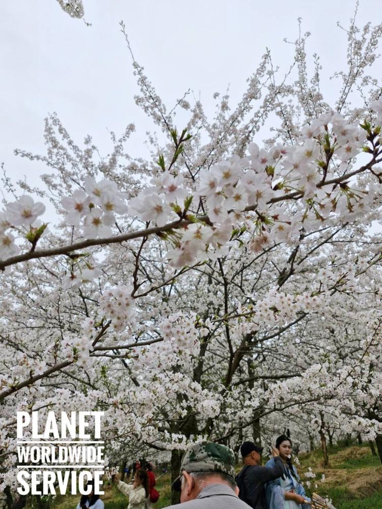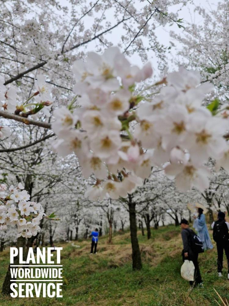อุทยานซากุระหมื่นไร่ ช่วงดอกซากุระผลิบาน อยู่ริมทะเลสาบหงเฟิ่ง