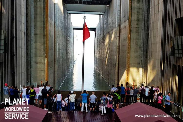 สาธิตการล่องเรือสำราญผ่านเขื่อนซานเสียต้าป้า