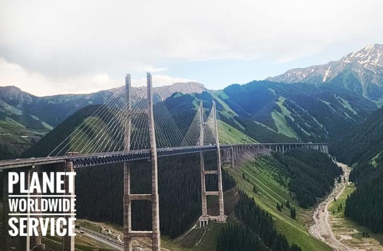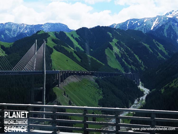 สะพานยักษ์กั๋วจือโกว สร้างระหว่างหุบเขาสูง เป็นการสร้างสะพานสายเคเบิ้ลที่มีขนาดใหญ่ และมีความสูงเสียดฟ้าแห่งหนึ่งของโลก ด้วยถนน 4 เลนผ่านหุบเขาทุ่งหญ้าสูง โดยเสาของสะพานสูงถึง 215 เมตร สิ่งที่น่าภูมิใจ และอัศจรรย์ใจคือความสามารถของวิศวกร ที่ได้สร้างสะพานโค้งที่วนรอบตัวเองขนาดใหญ่ โดยใช้ความยาวเพียง 40 กม.