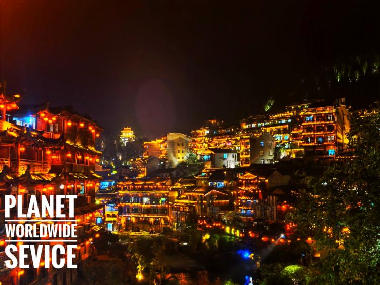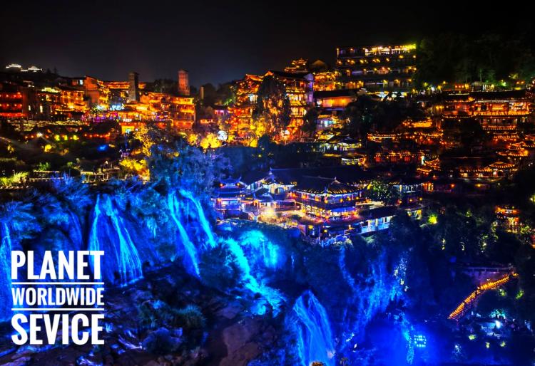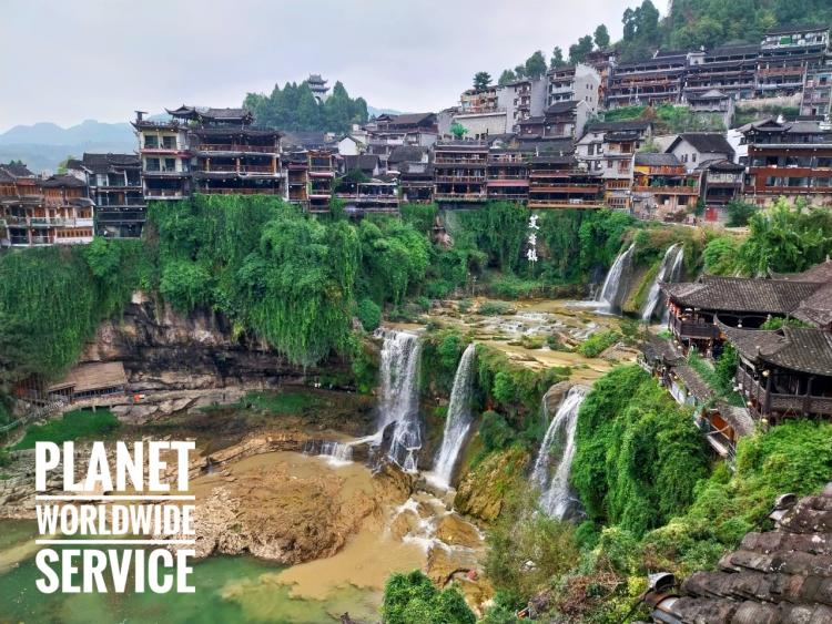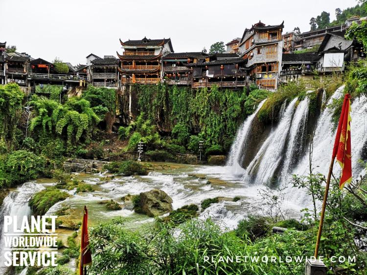 เมืองโบราณฟูหรงเจิ้น หมู่บ้านโบราณเก่าแก่กว่า 2,000 ปี มีเอกลักษณ์โดดเด่นที่น้ำตกขนาดใหญ่ไหลผ่านกลางหมู่บ้าน ที่นี่เคยเป็นเมืองท่าสำคัญในอดีต และเป็นสถานที่ถ่ายทำภาพยนตร์ชื่อดัง เรื่อง Hibiscus Town ภาพยนตร์ที่ได้รับรางวัลมากมายรวมทั้งรางวัลภาพยนตร์ดีเด่นในปี ค.ศ. 1987