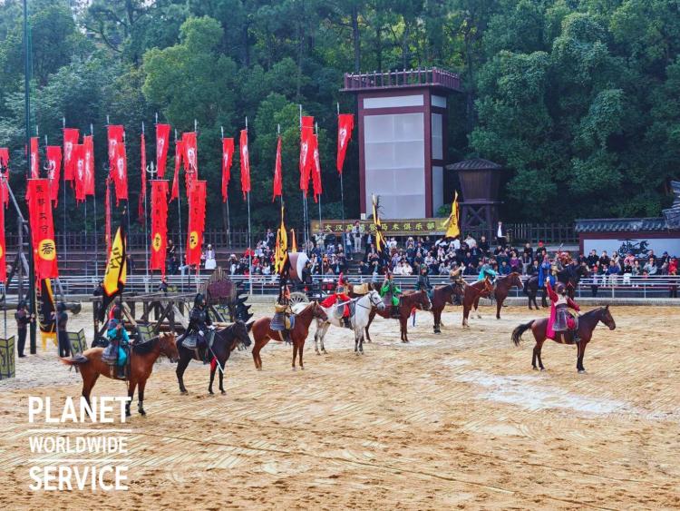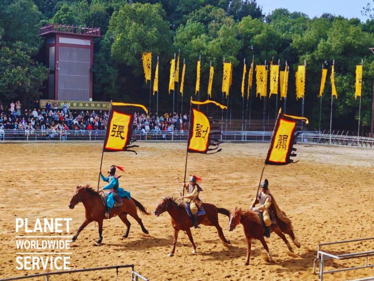โรงถ่ายภาพยนตร์สามก๊ก สถานที่จำลองเมืองสามก๊กขนาดใหญ่ ประกอบด้วยฉากสำคัญ stunt arena for fire at Chibi ศึกผาแดง ฉากไฟไหม้กองทัพเรือของโจโฉ Gan Lu Temple ถ่ายทำฉากที่แม่ของซุนฮูหยินเจอกับเล่าปี่ และเล่าปี่กับซุนกวนฟันหินเสี่ยงทายปราบโจโฉ Fengyi Pavilion ซึ่งใช้ถ่ายทำฉากที่ลิโป้ลอบเป็นชู้กับเตียวเสี้ยน Kingdom of Wu ประตูเมืองหวู Quelou Towers หอคอยในแบบของราชวงศ์ฮั่น เป็นต้น