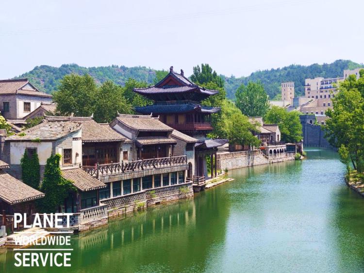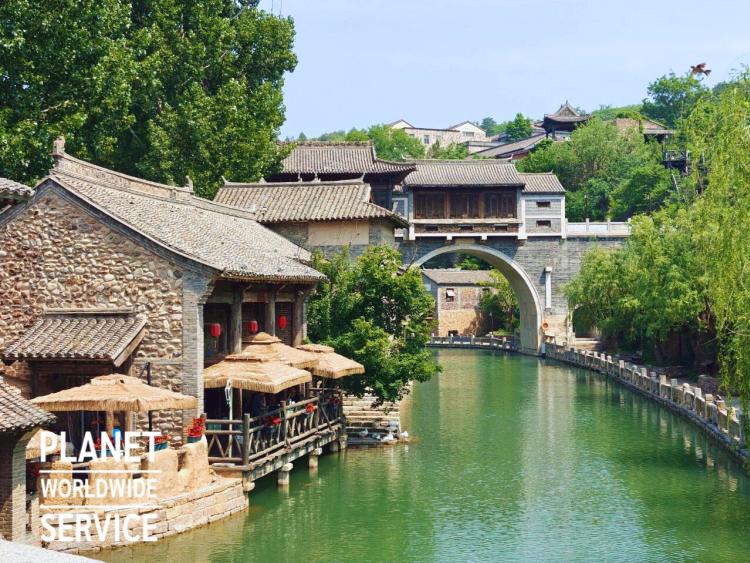 เมืองโบราณกู๋เป่ย เมืองโบราณเก่าริมน้ำ ตั้งอยู่เชิงกำแพงเมืองจีนด่านซือหม่าไถ มีสถาปัตยกรรมโบราณสมัยราชวงศ์หมิงและชิง และโรงแรมสไตล์โบราณ ร้านอาหาร และร้านค้า กว่า 400 ร้าน ตลอดจนโซนจัดแสดงวัฒนธรรมดั้งเดิม สิ่งปลูกสร้างต่างๆ สร้างขึ้นตามลำธารที่เลี้ยวลดคดเคี้ยว ไม่ว่าจะเป็นถนนสายเก่า โซนจัดแสดงวัฒนธรรมเก่าแก่ ร้านค้า หรือบ้านพักต่างๆ ต่างสร้างขึ้นริมธารน้ำ อาคารแต่ละหลังมีการปลูกไม้เลื้อยตามฝาผนังด้านนอก แสดงให้เห็นภาพที่มีเอกลักษณ์เฉพาะตัวของตอนใต้แม่น้ำแยงซี